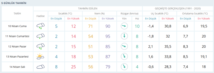 İŞTE BURSA İÇİN 5 GÜNLÜK HAVA DURUMU TAHMİNİ (10 NİSAN 2026)