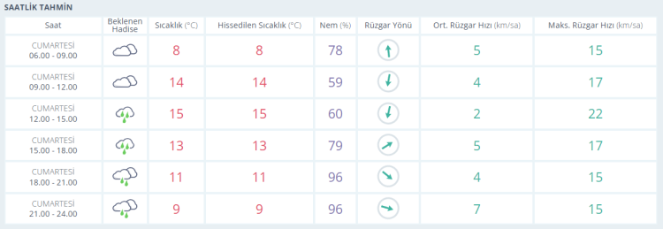 Hava sıcaklığının gün içinde 15 dereceye kadar yükselmesi, akşam saatlerinde 11 dereceye düşmesi, gece saatlerinde ise 9 dereceye kadar gerilemesi öngörülüyor.