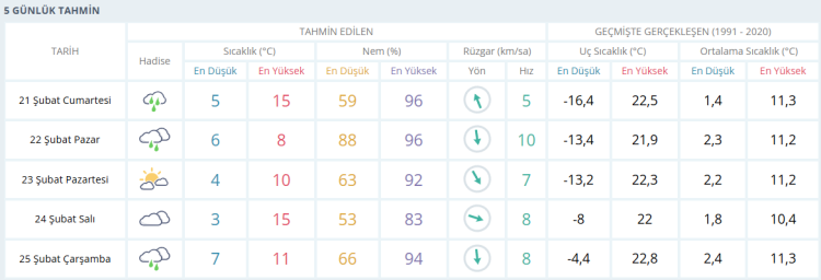 İŞTE BURSA İÇİN 5 GÜNLÜK HAVA DURUMU TAHMİNİ (21 ŞUBAT 2025)