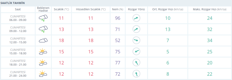 ÇARŞAMBA: Yağmurlu, sıcaklık 15 derece
