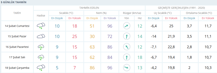 İŞTE BURSA İÇİN 5 GÜNLÜK HAVA DURUMU TAHMİNİ (14 ŞUBAT 2025)