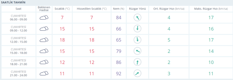 Öğle saatlerinde sıcaklıkların 18 dereceye kadar yükselmesi, akşam saatlerinde 12 dereceye, gece ise 11 dereceye düşmesi tahmin ediliyor.
