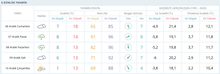İŞTE BURSA İÇİN 5 GÜNLÜK HAVA DURUMU TAHMİNİ (6 ARALIK 2025)