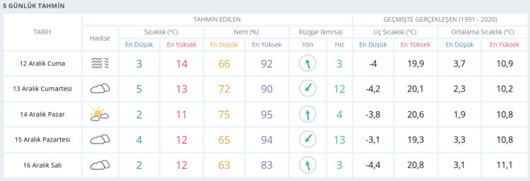 BURSA'DA 5 GÜNLÜK HAVA DURUMU TAHMİNİ