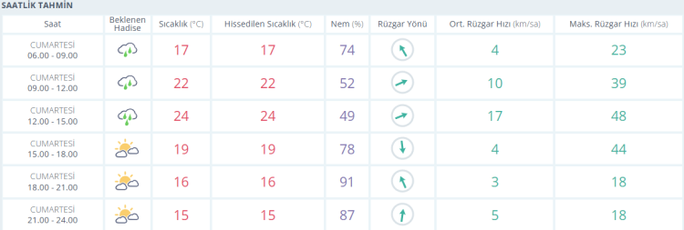 İŞTE BURSA İÇİN SAATLİK HAVA DURUMU TAHMİNİ (4 EKİM 2025)