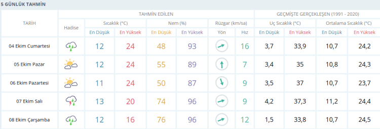 İŞTE BURSA İÇİN 5 GÜNLÜK HAVA DURUMU TAHMİNİ (4 EKİM 2025)