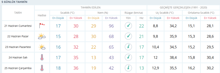İŞTE BURSA İÇİN 5 GÜNLÜK HAVA DURUMU TAHMİNİ (21 HAZİRAN 2025)