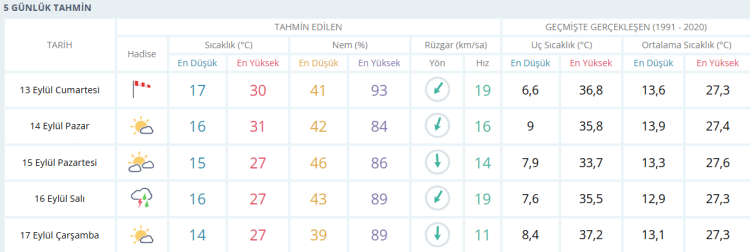 İŞTE BURSA İÇİN 5 GÜNLÜK HAVA DURUMU TAHMİNİ (13 EYLÜL 2025)