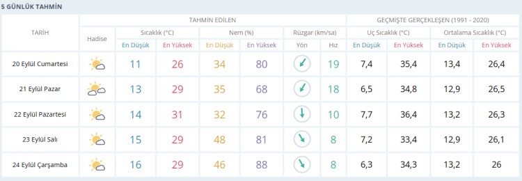 İŞTE BURSA İÇİN 5 GÜNLÜK HAVA DURUMU TAHMİNİ (20 EYLÜL 2025)