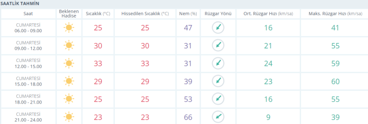 PAZARTESİ: Az bulutlu, sıcaklık: 31 derece