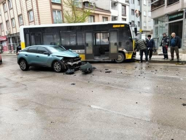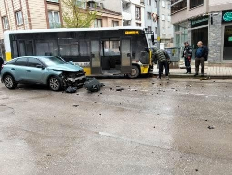 Kaza, saat 09.00 sıralarında Osmaniye Mahallesi Altay Caddesi üzerinde meydana geldi. Erdinç K.(33) yönetimindeki 16 M 06101 plakalı özel halk otobüsüne, Gaziler Sokaktan çıkan sürücü Dilek T.(27) yönetimindeki 16 ASH 563 plakalı otomobil yandan çarptı.