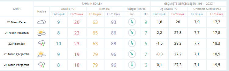 Bursa'da sıcaklıklar ise 12 ila 18 derece arasında seyredecek.