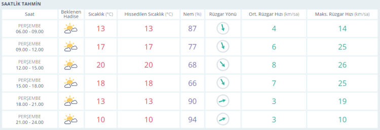 İŞTE BURSA İÇİN SAATLİK HAVA DURUMU TAHMİNİ (16 NİSAN 2026)