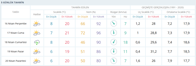 İŞTE BURSA İÇİN 5 GÜNLÜK HAVA DURUMU TAHMİNİ (16 NİSAN 2026)