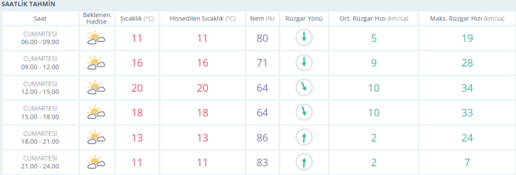 Akşam saatlerinde termometreler 13 derece seviyelerinde ve parçalı bulutlu gösterirken gece saatlerinde ise 11 derece seviyelerinde ölçülüyor.