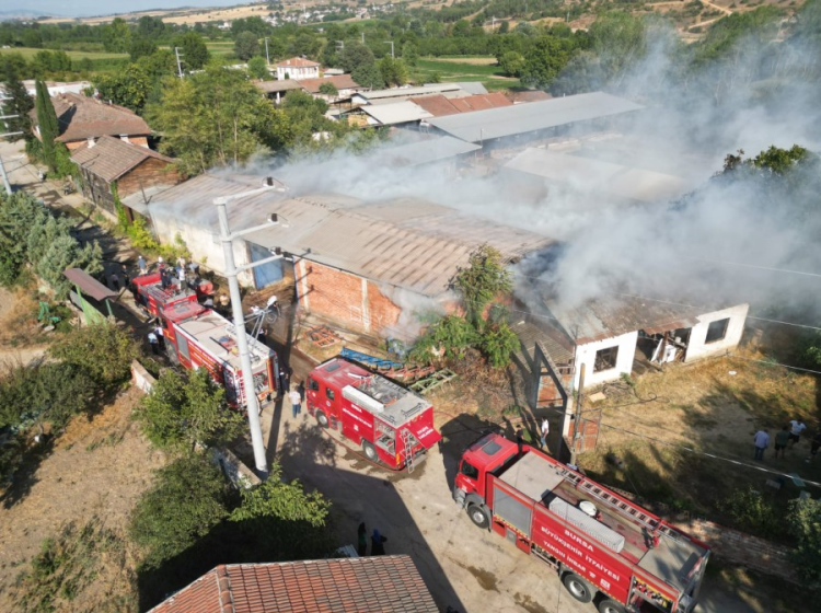 Yangın saat 16.30 sıralarında Boğazköy mahallesinde Galip Duyan'a ait çiftliğin samanlığında meydana geldi.Henüz belirlenemeyen bir nedenle çıkan yangını gören vatandaşlar durumu İnegöl İtfaiyesine haber verdi.