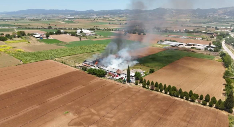 Bursa'da hayvan çiftliğindeki büyük yangın havadan görüntülendi