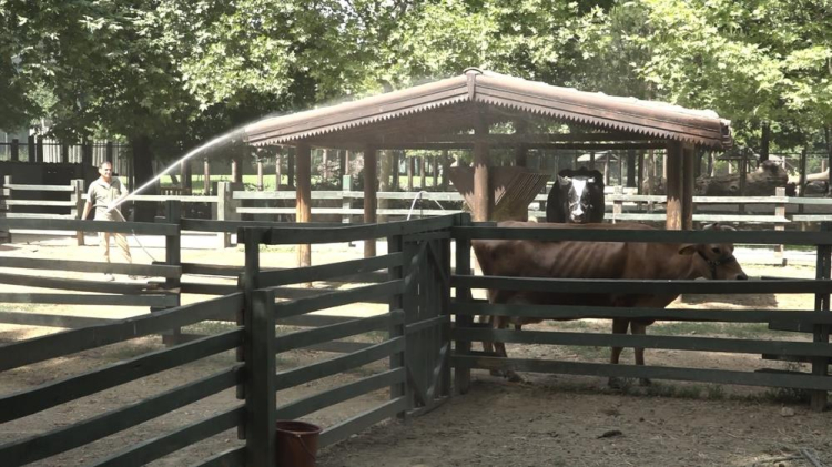 Hayvanat bahçesi çalışanları, inek, eşek, deve, at gibi hayvanları hortumlarla serinletmeye çalışırken, bazı hayvanları ise çeşitli sebze ve meyvelerden oluşan buzlu karışımla serinletmeye çalıştı. Bakıcıları tarafından özenle hazırlanan kokteyller için birbiriyle yarışan maymunlar, sıcak havada serinlemenin keyfini çıkardı.