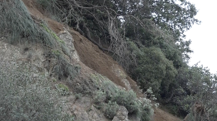 Dalgıç, kayalık yapı üzerindeki toprak kütlesinin aderansını kaybederek aşağı kaydığını belirterek, “Çok şükür herhangi bir can ya da mal kaybı yaşanmadı” dedi.