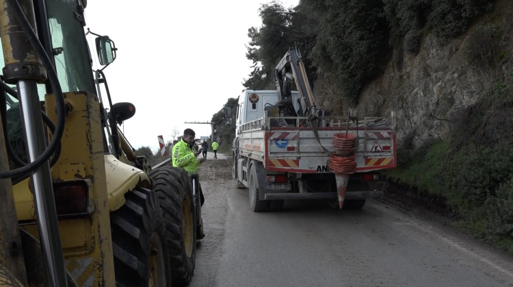 Sabah saatlerinde yapılan çalışmalarla yol üzerindeki hafriyat büyük ölçüde kaldırılırken, bölgede toprağın yer yer yavaş şekilde kaymaya devam ettiği gözlendi.