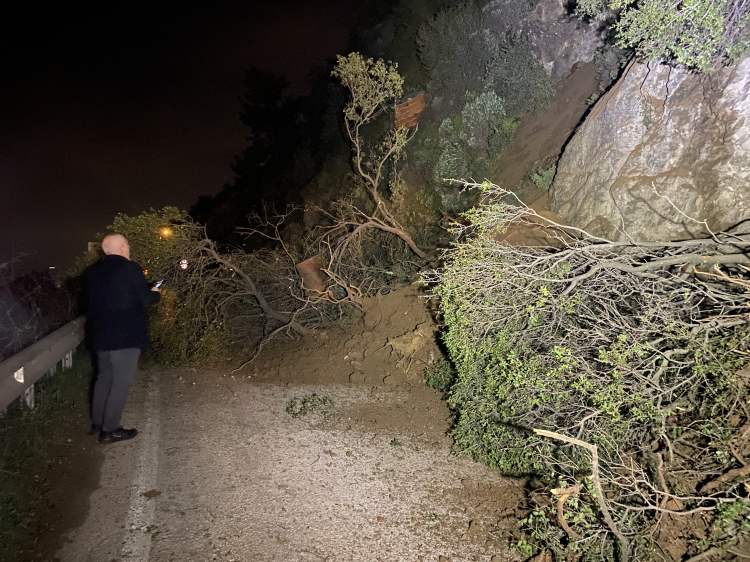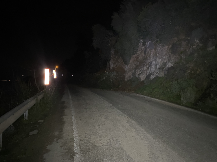 Başkan Dalgıç, "Şu anda kayanın üzerindeki toprak birikintileri, ağaçlar ve çalılarla birlikte aşağıya indi. Yol her iki yönden kapatıldı ve gerekli emniyet tedbirleri alındı. Bölge oldukça dik ve karanlık olduğu için şu aşamada müdahalede bulunmuyoruz. Karayolları uzmanlarının yapacağı incelemenin ardından atılacak adımlara karar verilecek" dedi.