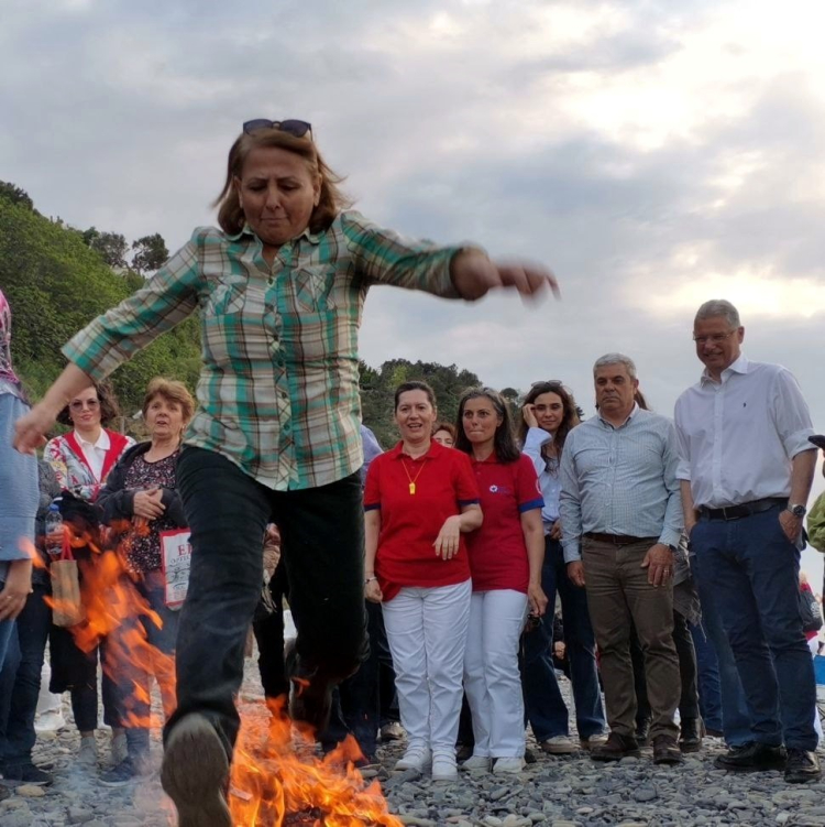 Sahilde toplanan vatandaşlar, yakılan ateşin üzerinden atladı. Etkinlikler, vatandaşların yoğun katılımıyla akşam saatlerine kadar sürdü.