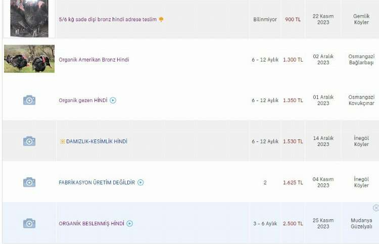 Bu platformlardan biri olan sahibinden.com üzerinden satılan hindilerin fiyatı 900 TL'den başlayarak 2 bin 500 TL'ye kadar yükseliyor...