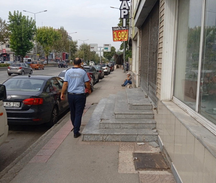Pazar günleri seyyar satıcıların bulunduğu Ulubatlı Hasan Bulvarı ve İstanbul Caddesi'nde denetim yapan ekipler, yayalara ait olan kaldırımlardaki işgali sona erdirdi.