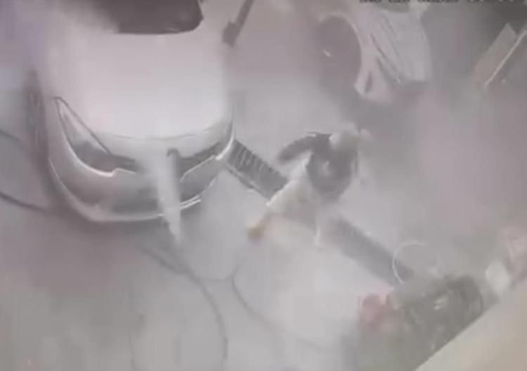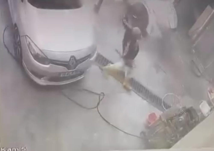 Bursa'nın Yıldırım ilçesinde bir oto yıkamacı müşterisinin bıraktığı aracı yıkamak için tazyiklisuyu açtı.