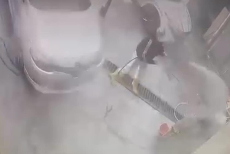 Suyla dans edercesine mücadele eden oto yıkamacının renkli anlara iş yerine ait güvenlik kamerasına anbean yansıdı.