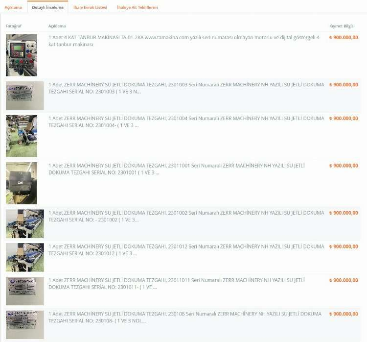 Fabrikaya ait tüm makineler 7 milyon 200 bin TL'den açık artırma ile satışa çıkarıldı.