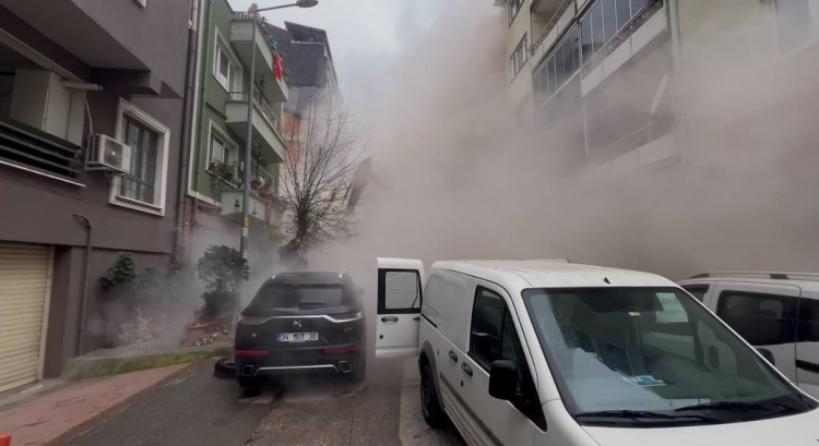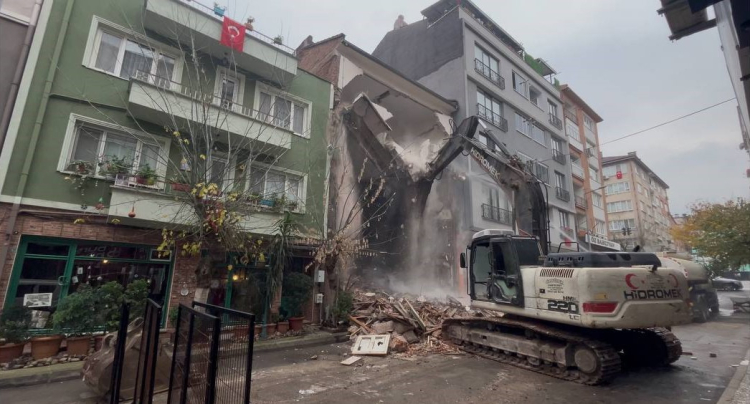 Eski binanın yıkılarak yerine yeni bina yapımı için hareke geçen yüklenici firma, iş makineleriyle sokağa geldi. Binanın yıkımı için harekete geçen iş makinesi, çatı kısmından aşağı doğru binayı yıkacağına zeminden işe başladı. Binan ilk iki katı yıkı yıkılırken, 3'üncü ve 4'üncü katı yandaki binaların arasında asılı kaldı.