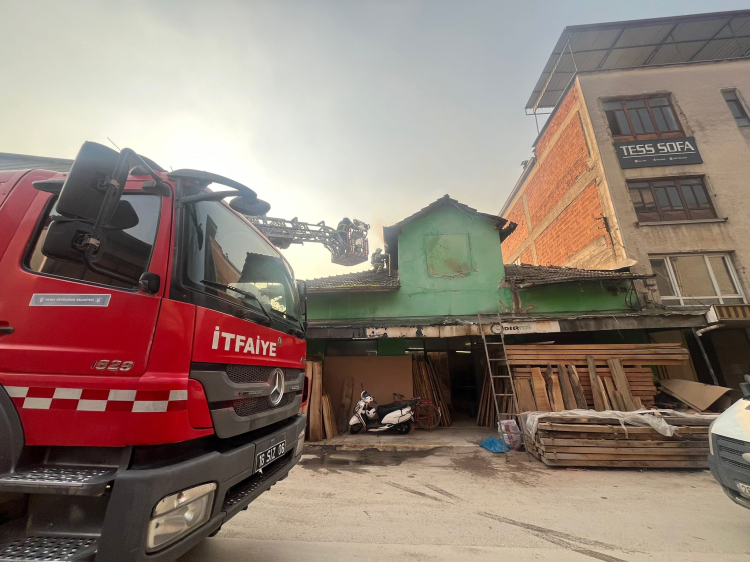 Mahmudiye Mahallesi'ndeki mobilya imalathanesinin bacasından çıkan kıvılcımlar, çatı katında yangına neden oldu.