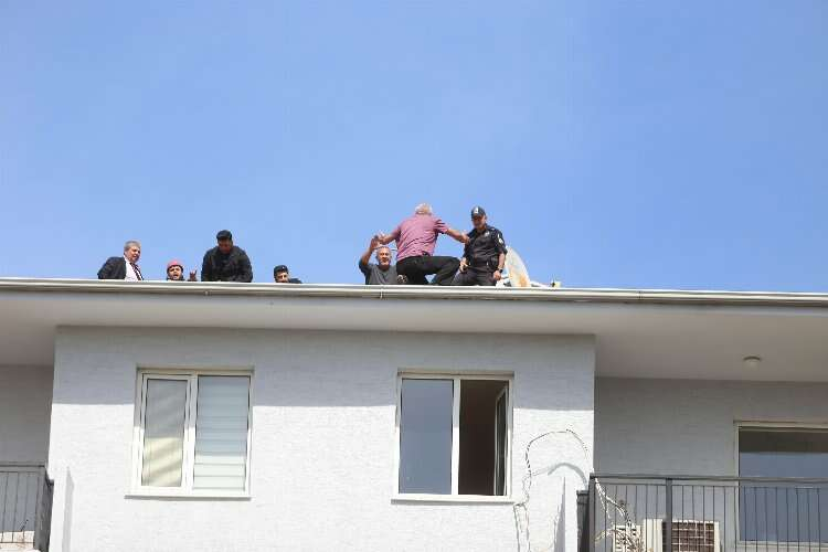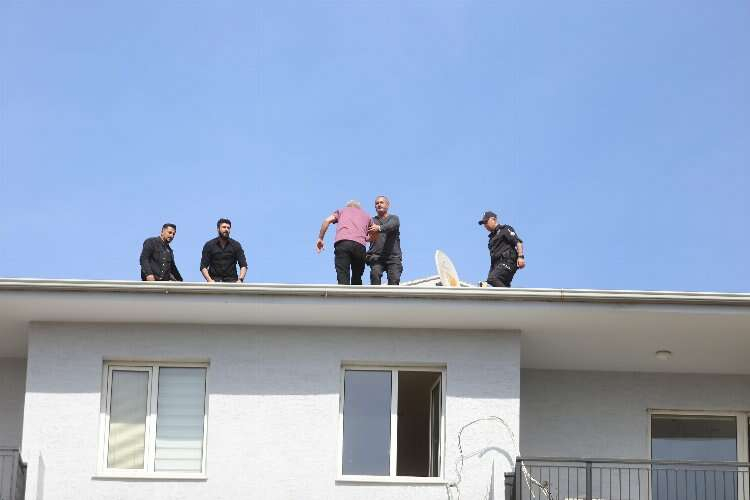 Çatıdan indirilen Öner A. olay yerinde bekleyen ambulansta sağlık kontrolleri yapılarak daha sonra polis ekiplerince ifadesi alınmak üzere emniyete götürüldü.