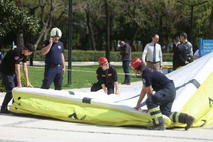 İtfaiye ekipleri şahsın atlama tehlikesine karşı hava yastığı açarak tedbir aldı. Polis ekipleri ise çatıya çıkarak intihar girişiminde bulunan şahsı ikna etmeye çalıştı.