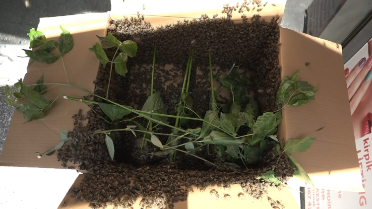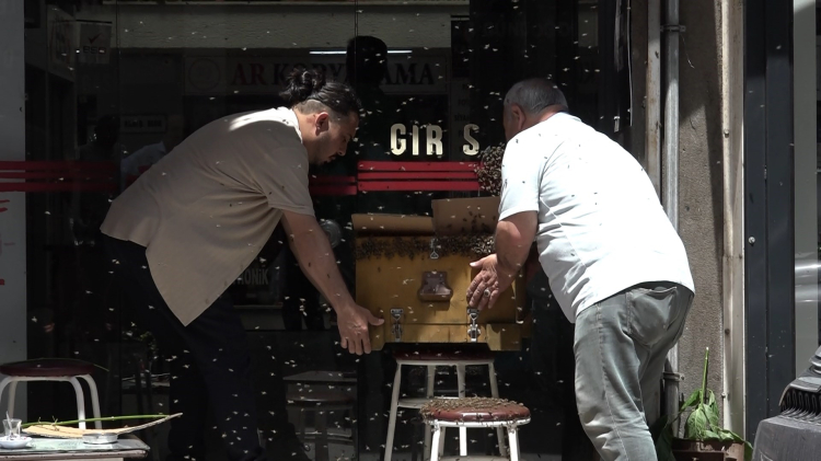 Esnafın bilgi vermesi üzerine olay yerine gelen arıcılıkla uğraşan ekipler, ilk önce kutunun içine aldığı arıları sonrasında ise peteklerin bulunduğu sandığa aldı. Arıları büyük bir soğuk kanlılıkla alan kişiler, esnafa ve vatandaşa da rahat nefes aldırdı.