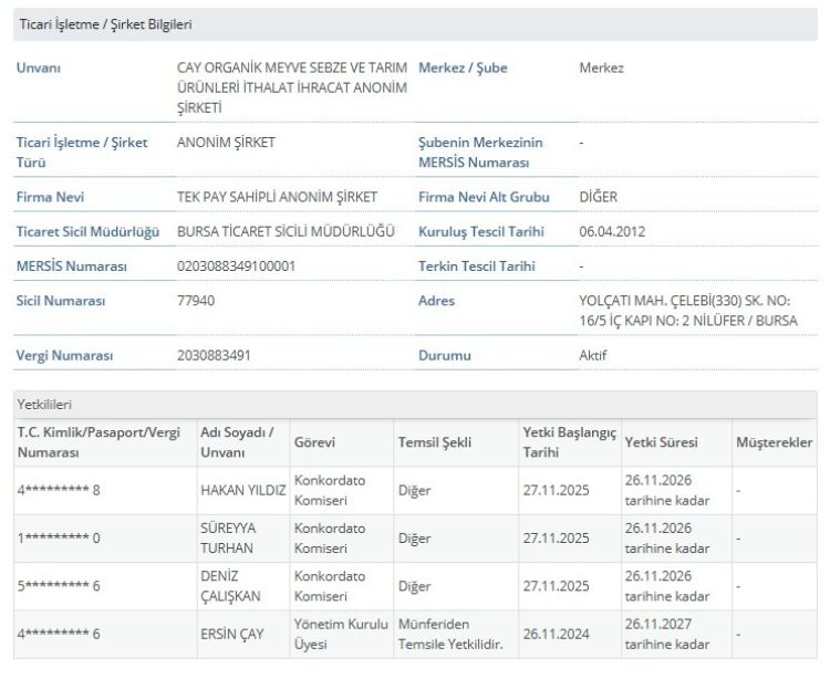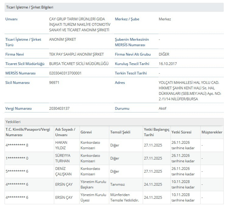 Cay Grup Tarım Ürünleri Gıda İnşaat Turizm Nakliye Otomotiv Sanayi ve Ticaret A.Ş. ile Cay Organik Meyve Sebze ve Tarım Ürünleri İthalat İhracat A.Ş.’nin konkordato talebinin mahkemece kabul edilmesinin ardından, çok sayıda işçi Yenişehir’de bir araya gelerek yönetimi protesto etti.
