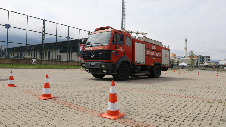 Bursa Büyükşehir Belediyesi’nin 100 itfaiye eri alımı için açtığı sınava giren 450 aday, uzman itfaiyeciler tarafından özel olarak hazırlanan parkurda fiziki dayanıklılık testine tabi tutuldu. Ağırlık taşıma, merdiven çıkma, slalom koşu, şınav, mekik ve araç kullanmadaki hünerlerini gösteren adaylar, ilk 100’e girebilmek için ter döktü.