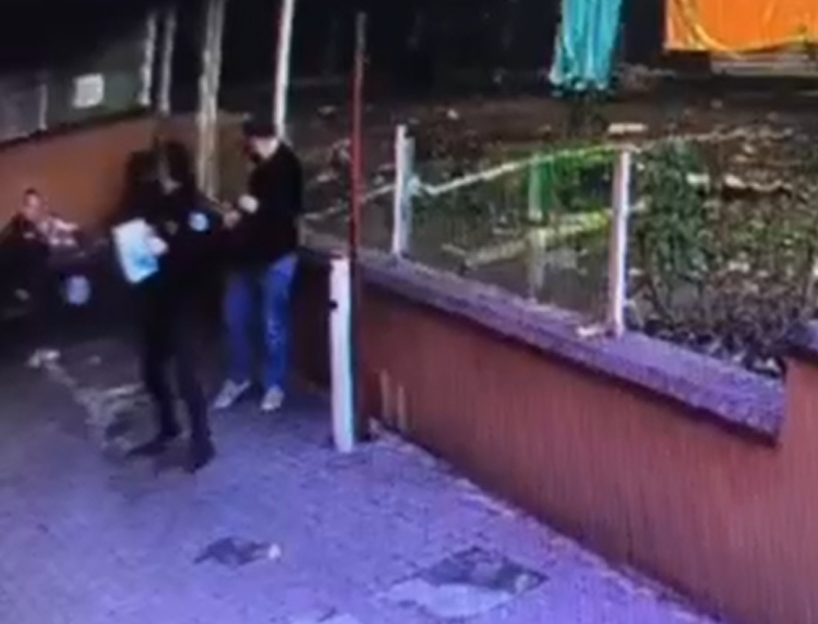 Yaralanmaktan son anda kurtulan itfaiyecinin, şişenin atıldığı yöne bakıp tepki gösterdiği anlar da görüntüye yansıdı