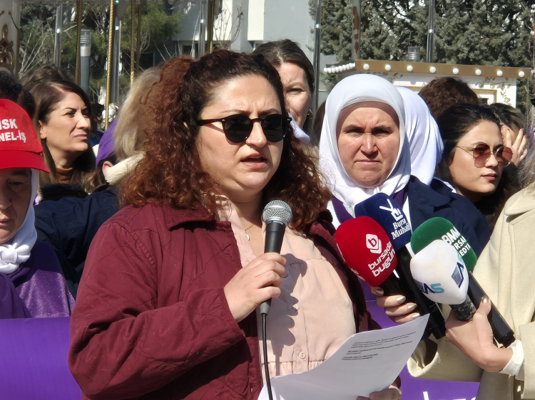 Genel İş Bursa 2 No'lu Yöneticilerinden Fatmanur Kır, kadın istihdamına ve kadına yönelik şiddete değinerek, "Toplumun yarısını oluşturan biz kadınlar toplumsal hayatın bütününde eşitsizlik ve ayrımcılığa maruz kalıyoruz. Toplumsal cinsiyet eşitsizliği, kadın cinayetleri, hayat pahallığı ve kadın yoksulluğu durdurulamaz seviyelere çıkıyor, kadın işsizliği katlanıyor artıyor. 2025 yılında asgari ücreti hâlâ tek kişi üzerinden hesaplayan siyasal iktidar bu yıl 'aile yılı' ilan ederek bir kez daha emeğimizi karşılıksız bırakacak, bizi eve hapsedecek yoksul bırakacak, şiddete açık hale getirecek politikalara olan ısrarından vazgeçmedi. Kadına yönelik șiddete karşı cezasızlık politikalarına buradan bir kez daha ilan ediyoruz" dedi.