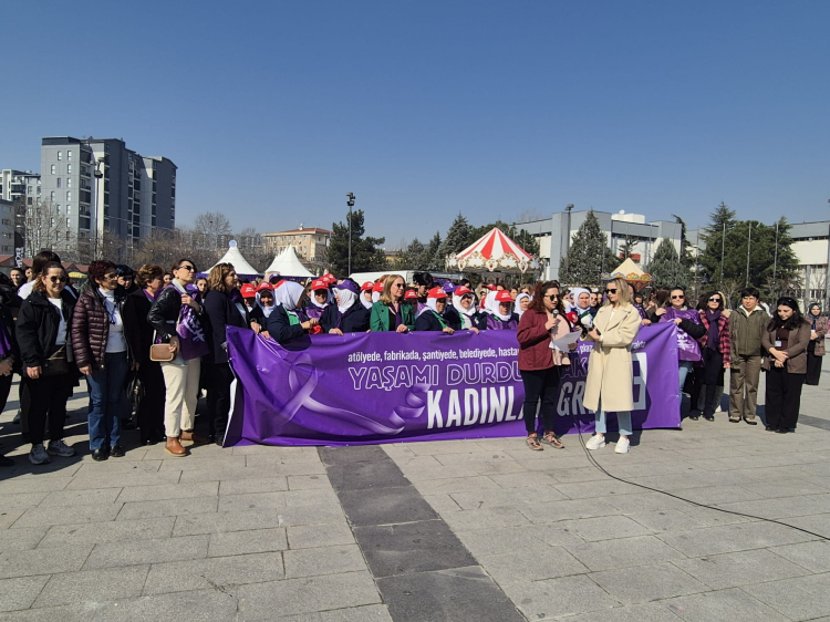 Atölyede, fabrikada, şantiyede, belediyede, hastanede, okulda, ofiste, plazada, evde, sokakta var olduklarını hatırlatmak amacıyla 8 Mart Dünya Kadınlar Günü'ne özel Genel İş Bursa Şubesi, Nilüfer Belediyesi Halk Evi önünde basın açıklaması gerçekleştirdi.