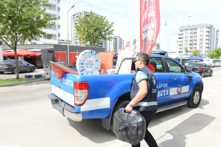 Bursa'da kaldırımı işgal eden esnafa ceza! Tabela ve dubalar toplandı