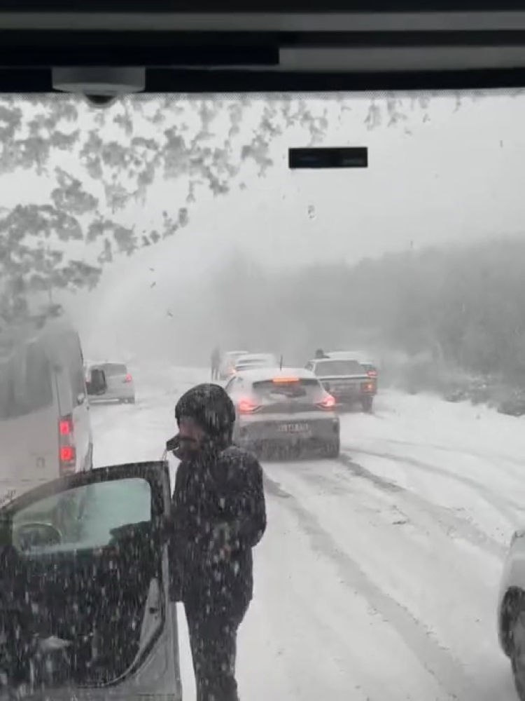 Sürücülerin zor anlar yaşadığı anlar cep telefonu kameralarına yansırken, bir yandan da tuzlama ekiplerinin bölgedeki çalışma yaptığı görüldü.