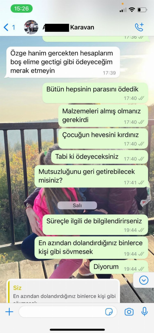 Bursalı bir devlet memuru, hobi bahçesinde kullanılmak üzere karavan arayışına girdikten sonra sarı site üzerinden gördüğü A. Karavan ile iletişime geçti.
