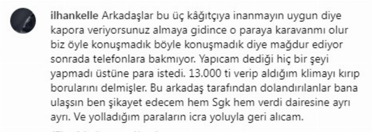 Sosyal medya hesabını yaklaşık 100 bin kişinin takip ettiği firma, en son paylaşımını geçtiğimiz senenin mayıs ayında yaptı. Firmaya ait imalathane, karavan görseli paylaşımlarının altında dolandırıldığını öne süren vatandaşların yorumları açıkça görülebiliyorken firmaya ait internet sitesine de erişim sağlanamıyor.
