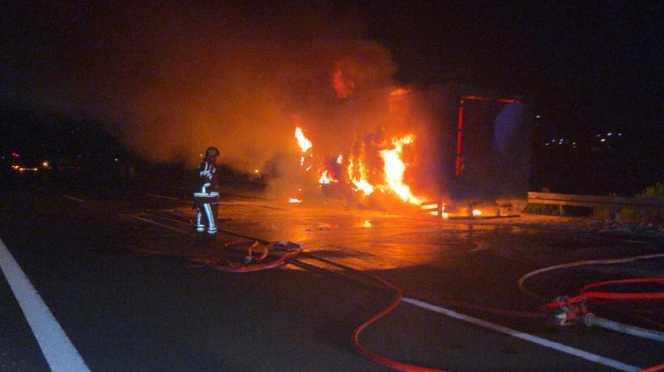 Gebze - Orhangazi - İzmir otoyolunda seyreden bir kamyon, Orhangazi çıkışı yakınlarında yanmaya başladı. Kısa sürede alev topuna dönen kamyona ekipler müdahale ediyor.