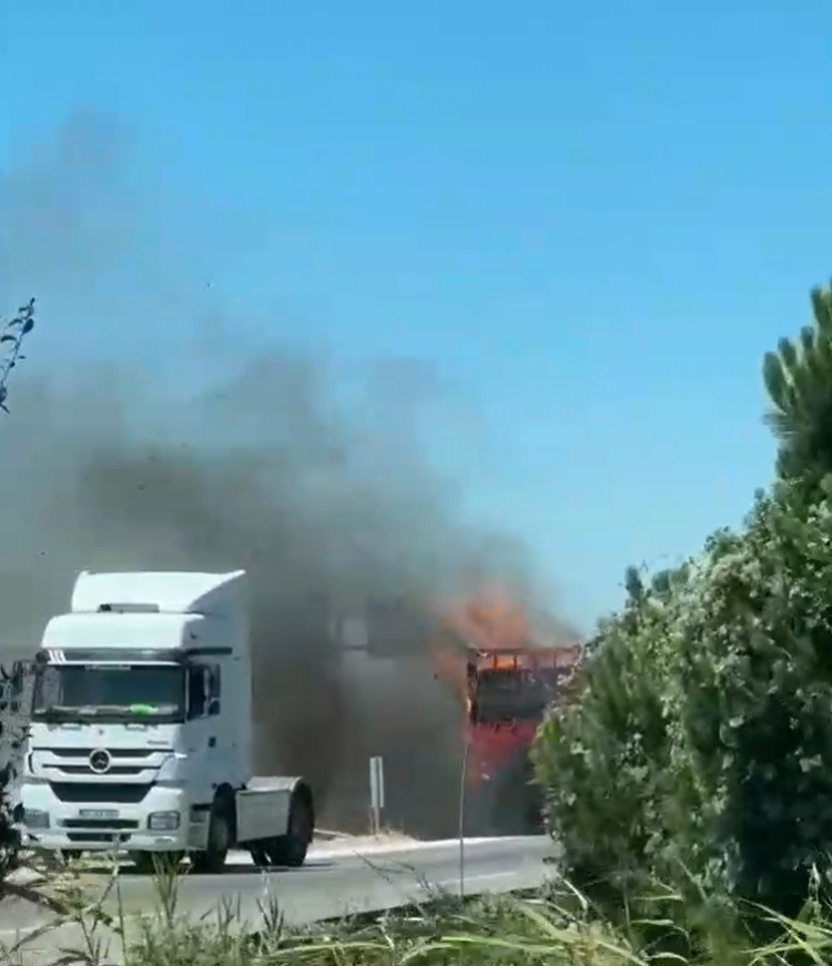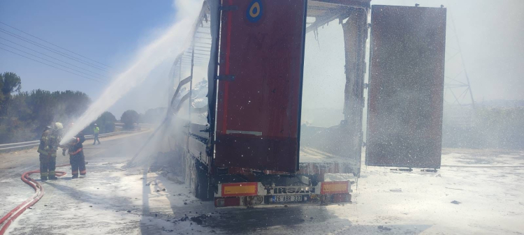 Sürücü, TIR’ı sağ şeride çekti. İhbarla olay yerine itfaiye ekipleri sevk edildi.