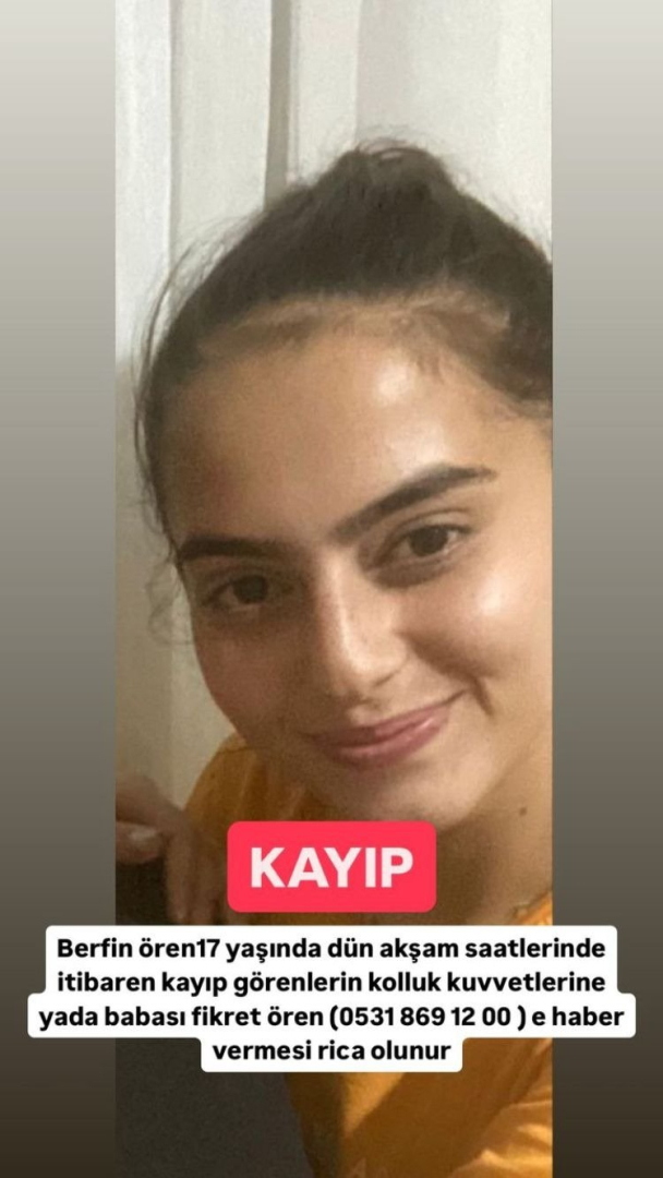 Ekipler tarafından her yerde aranan genç kızla ilgili olarak görenlerin kolluk kuvvetlerine ya da aşağıda iletişim numarası verilen babası Fikret Ören’e haber verilmesi istendi.