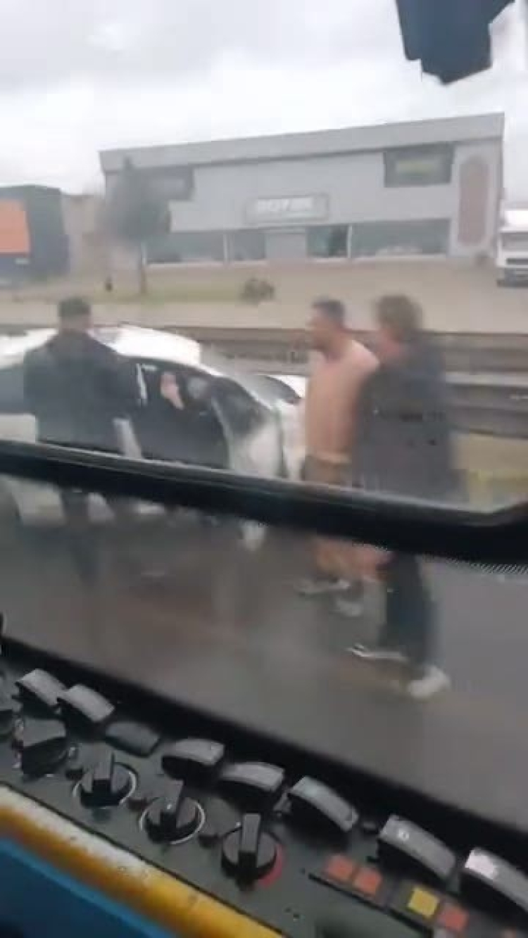 Diğer araç ise bariyerlere çarparak durabildi.