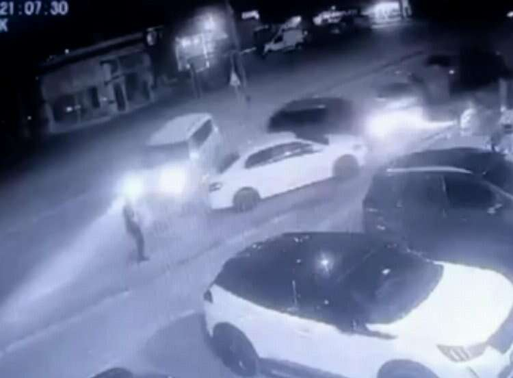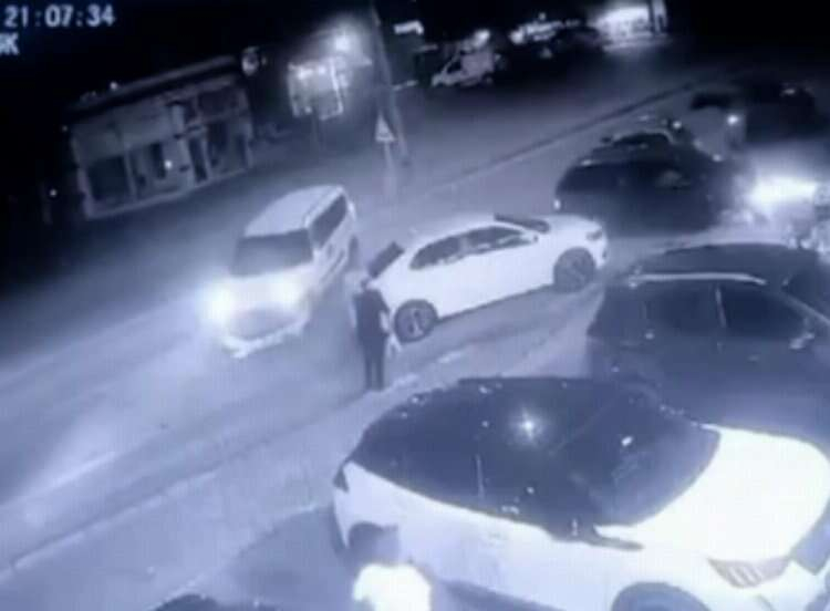 Çevrede bulunan bir işyerinin güvenlik kamerasına yansıyan görüntülerde, hafif ticari park halindeki bir otomobil çarpması ve o sırada çarptığı aracın yanında yürüyen vatandaş kıl payı ile kurtulduğu görüldü.